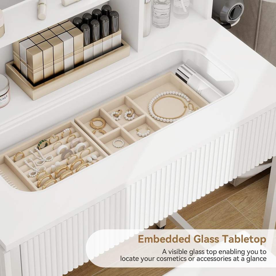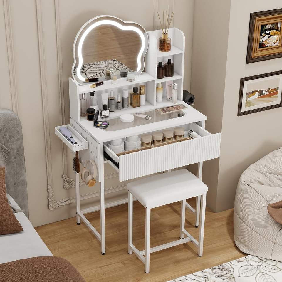 Petit bureau de maquillage pliable Phoenix Home avec miroir, lumières et chaise