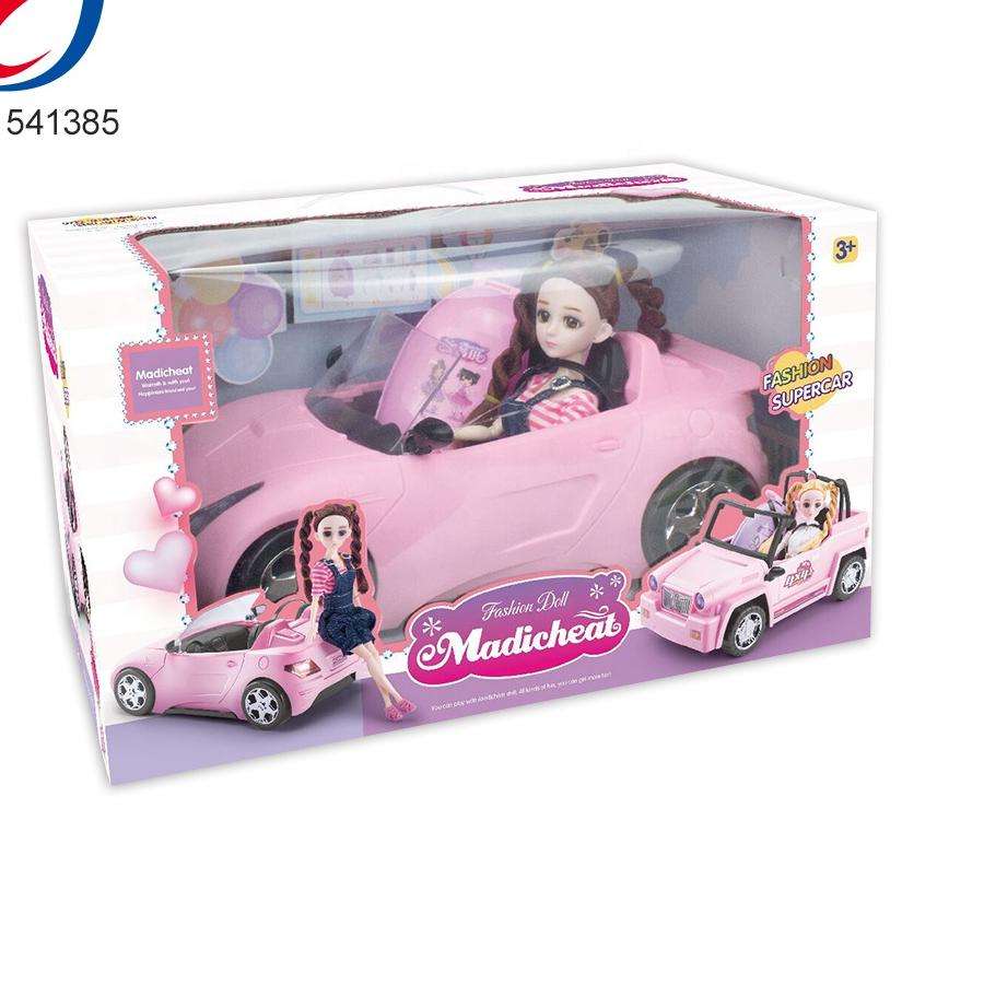 Petite mini jolie poupée de mode voiture électrique coulissante avec poupée, fille bébés poupée rose électrique coulissante à la mode avec voiture