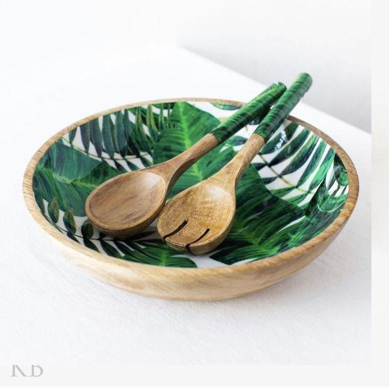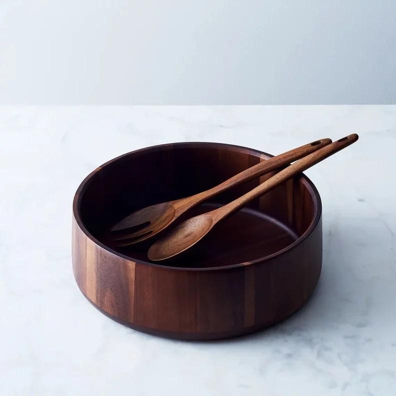 Petit saladier moderne en bois avec ensemble de serveurs Grand saladier en bois massif avec cuillère pour salade de fruits Racine sculptée