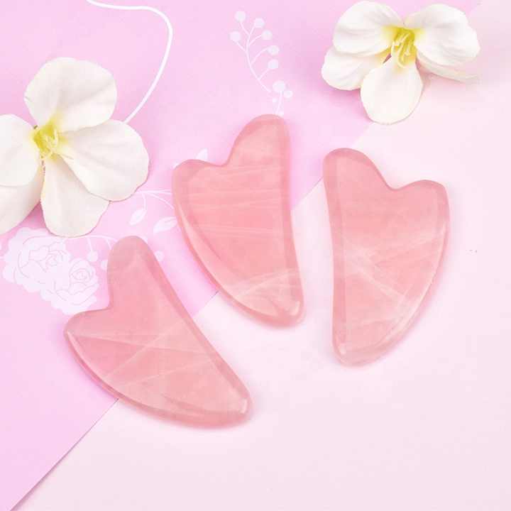 Petits outils de soin de la peau en pierre naturelle Guasha, logo personnalisé, mini Gua Sha en forme de cœur en quartz rose