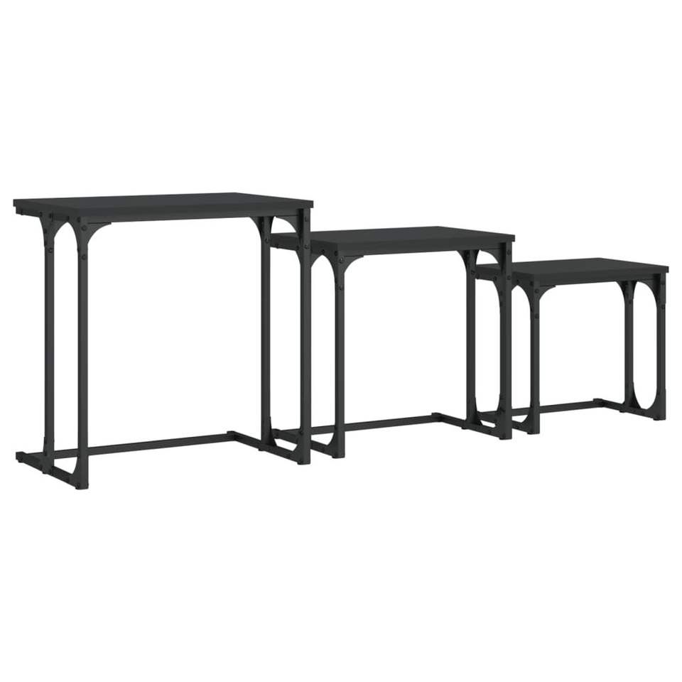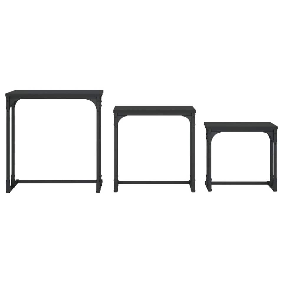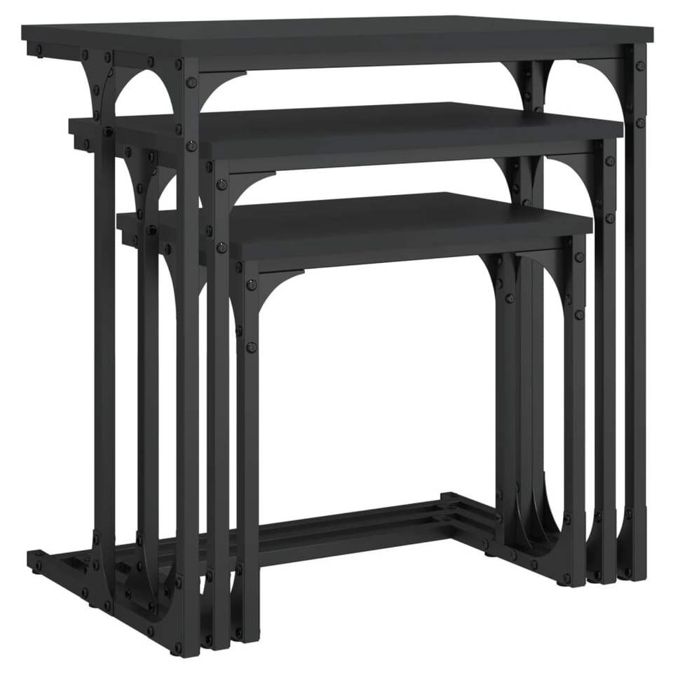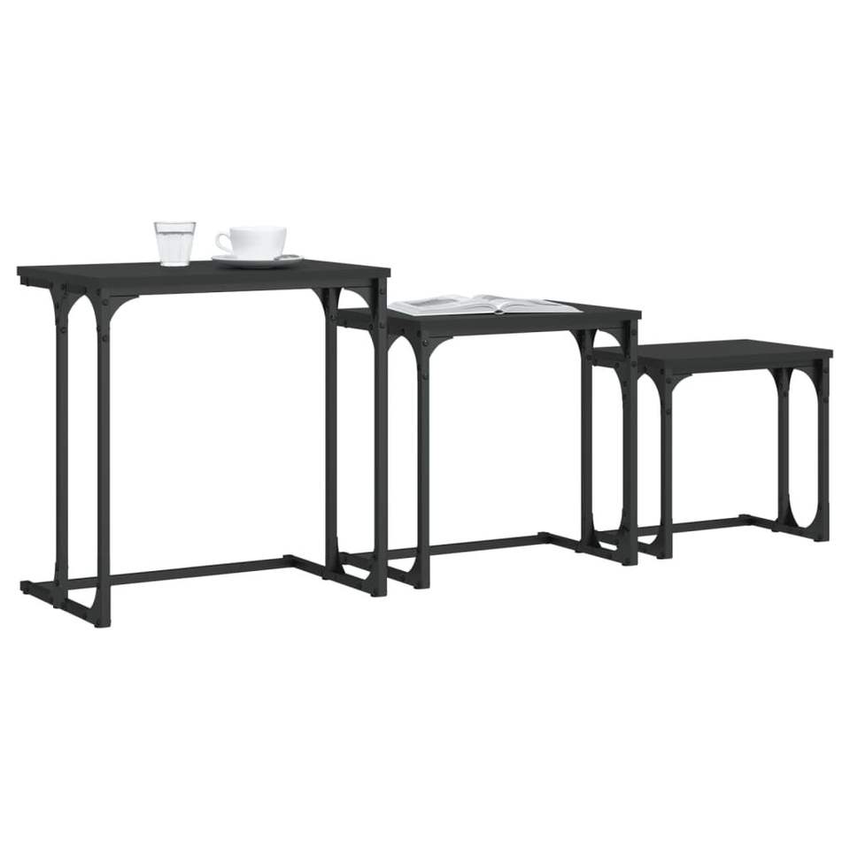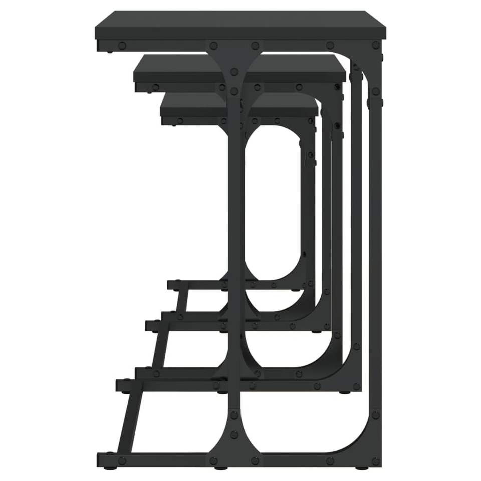 Petite table basse gigogne en bois d'ingénierie noir avec finition métallique, design empilable