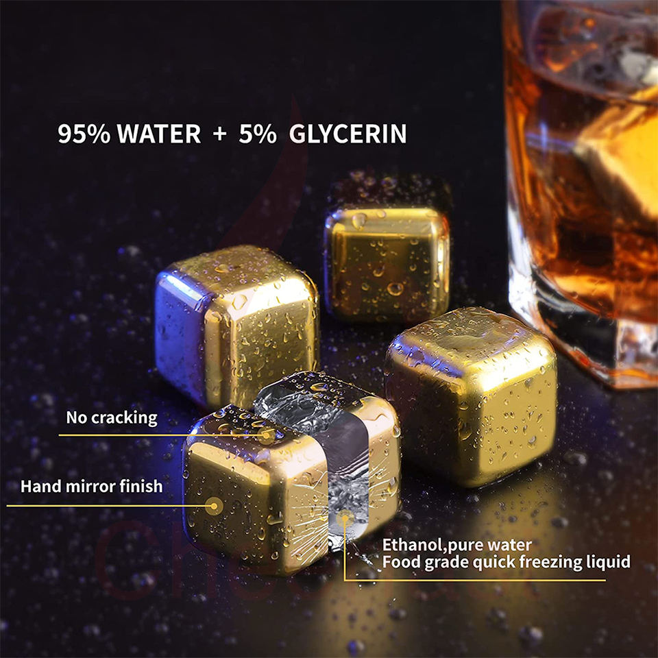 Ensemble de glaçons et de pierres à whisky réutilisables en acier inoxydable doré de qualité alimentaire, écologiques et inaltérables, pour petites commandes