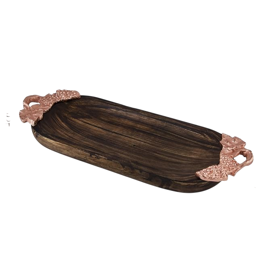 Petit plateau en bois de forme ovale en métal poignée en cuivre plateau décoratif de cuisine de salle à manger florale plateau de service traiteur personnalisable