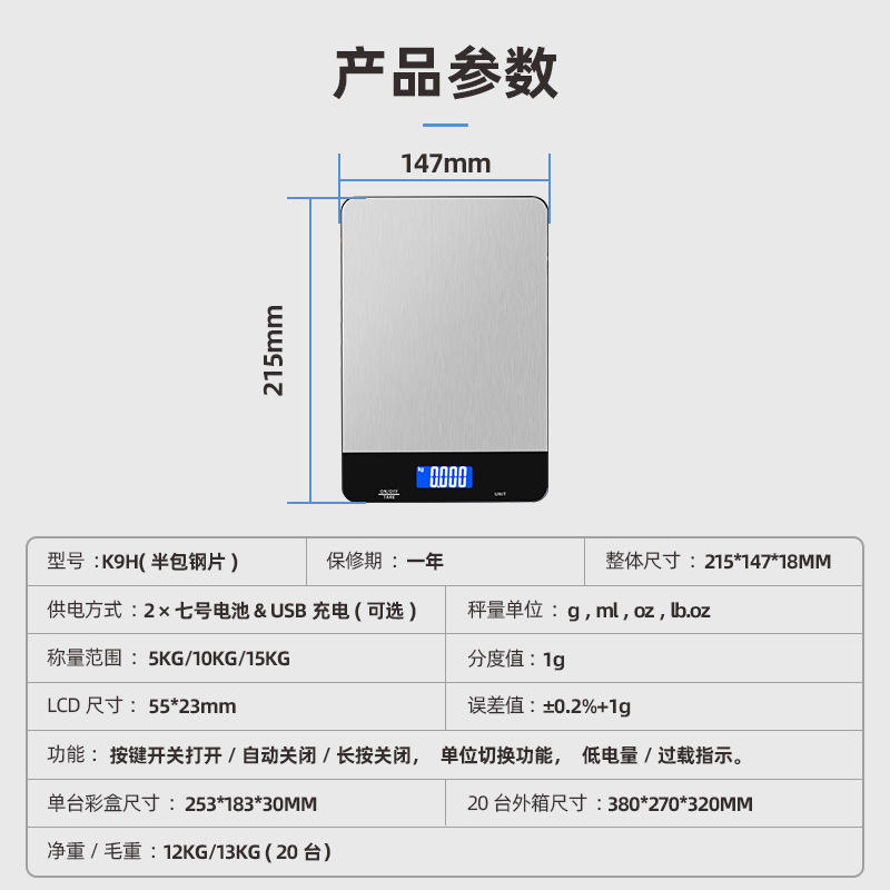 5KG/10KG/15KG peuvent être personnalisésCapacité de pesée maximale