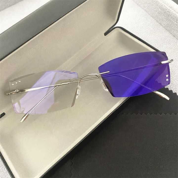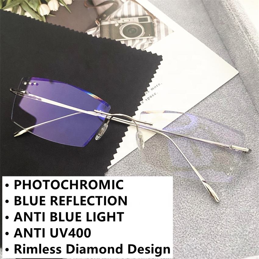 Lunettes photochromiques sans monture en alliage de titane, forme rectangulaire polygonale, avec verres photogray antireflet pour homme, modèle 2026