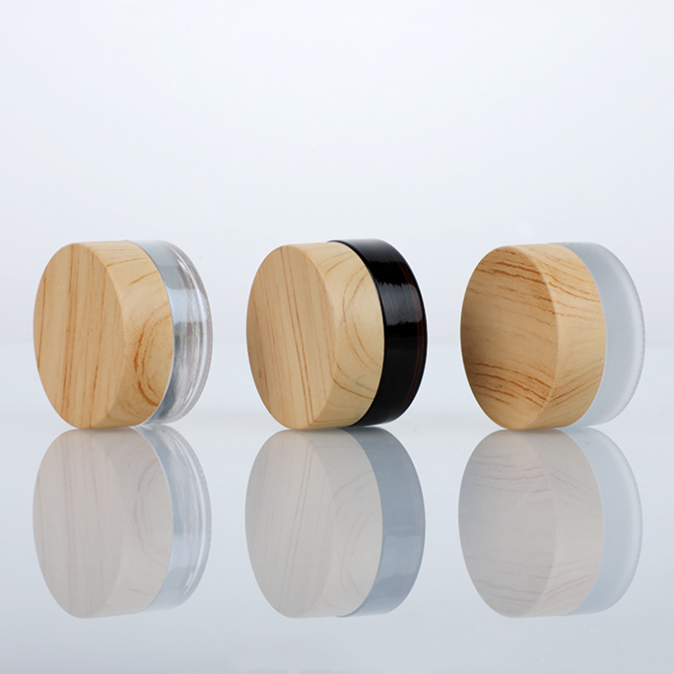 Petit emballage cosmétique de soins de la peau rechargeable 5g 5ml bouchon en plastique vide de grain de bois pot en verre de crème pour les yeux