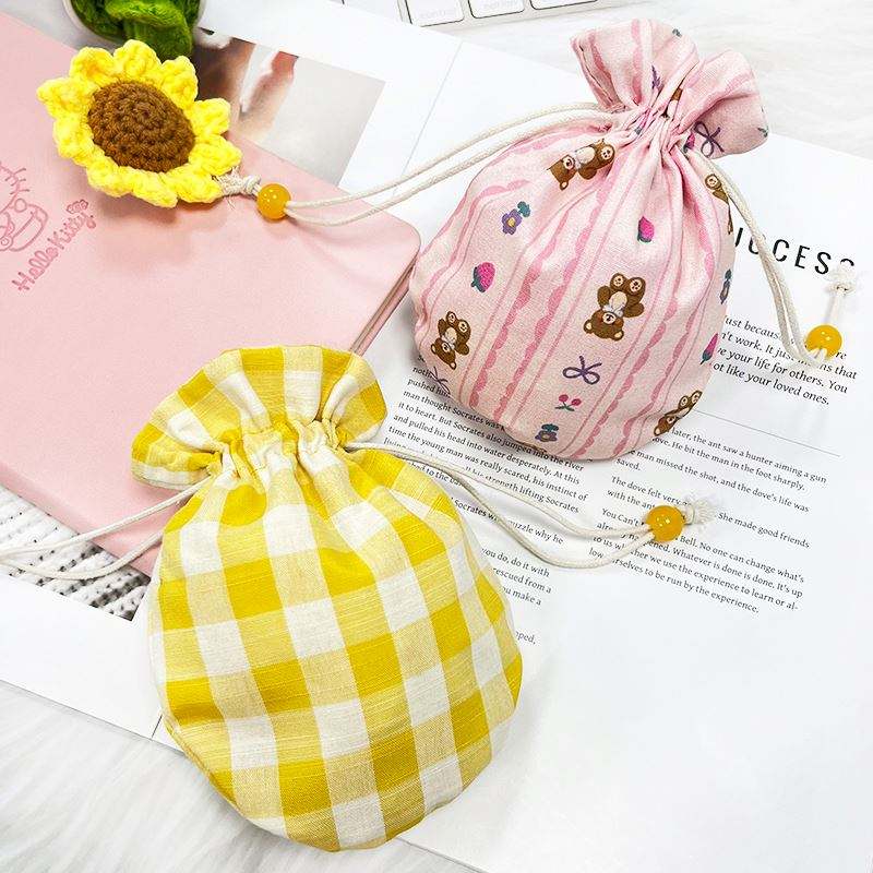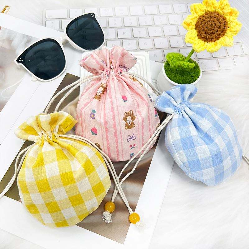 Petit sac à cordon en toile de coton biologique personnalisé, avec logo à carreaux et caractéristiques recyclables, pour le rangement et les cadeaux