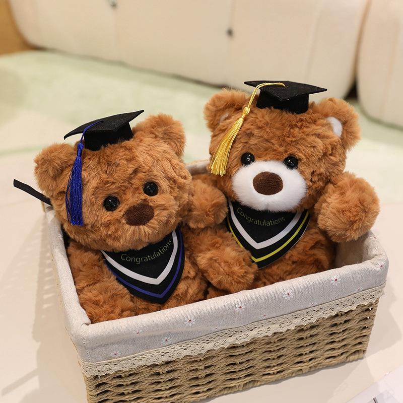 Poupée ours en peluche assis de petite taille Jouet en peluche super doux pour étudiants diplômés médecins; Cadeau