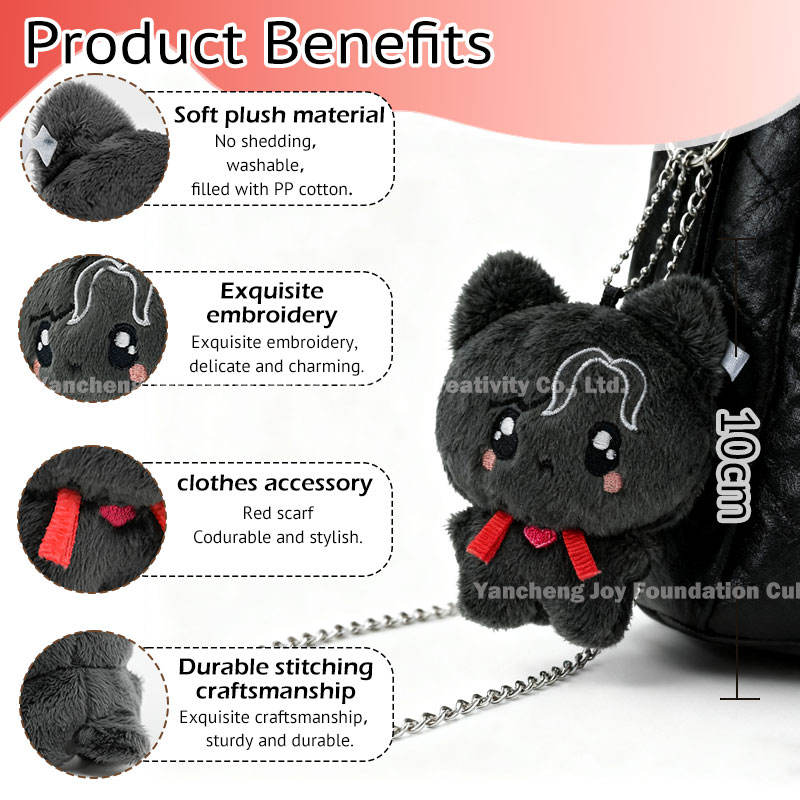 Petits jouets en peluche doux, accessoires de sac à dos, breloques de sac, cadeaux chat noir anime, porte-clés en peluche mignons, peluches personnalisées