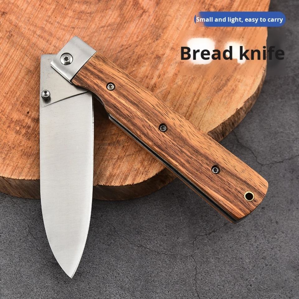 Couteau à pain pliant en acier inoxydable de petite taille pour fruits, bricolage, cuisine domestique, équipement de camping, manche en bois - Vente directe usine
