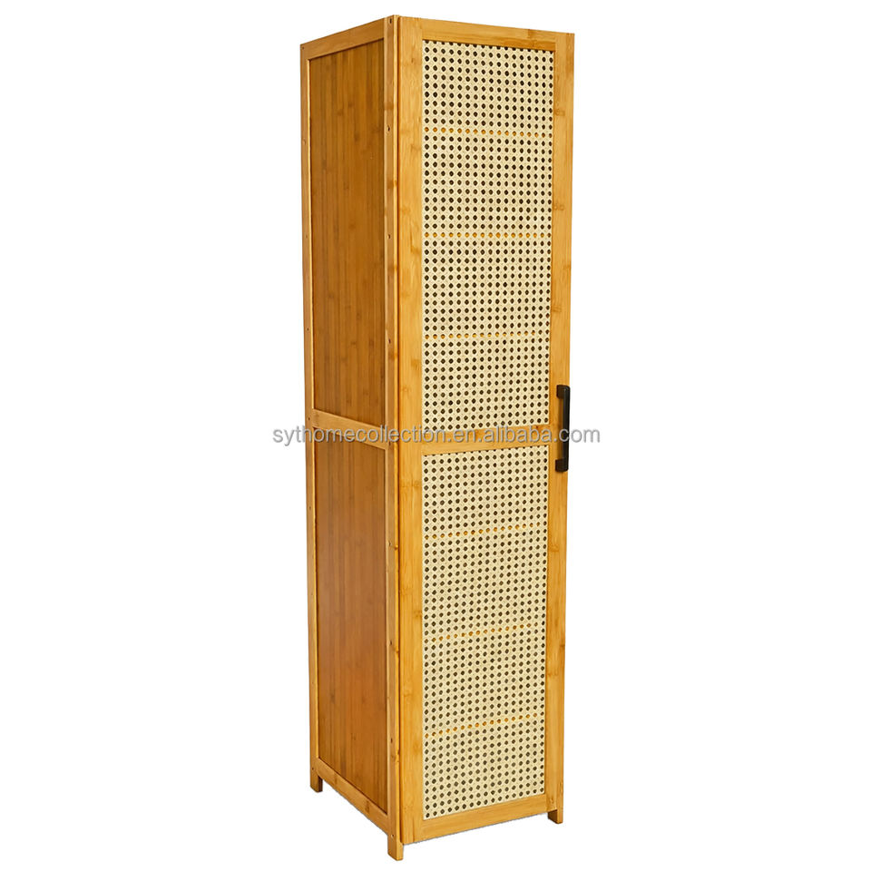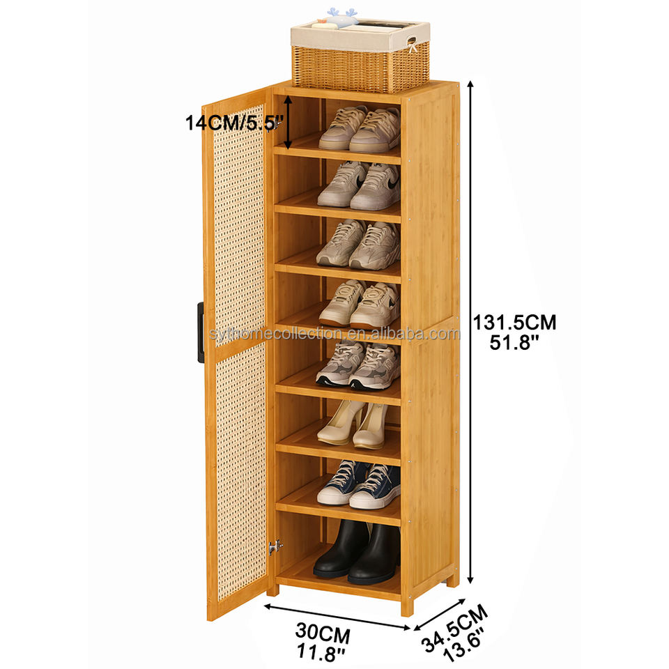 Meuble à chaussures fin SYT pour petits espaces, idéal pour l'entrée de studio, avec porte en rotin, pour les coins étroits