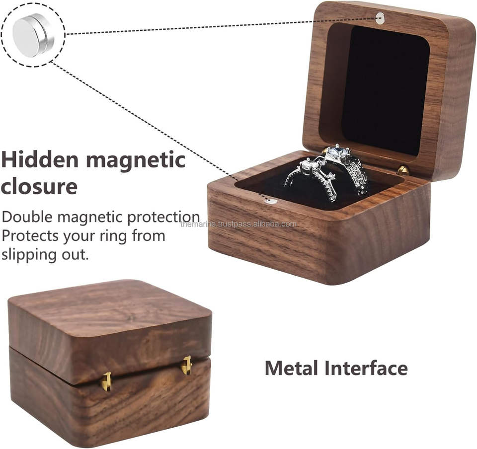 Petit carré en bois massif Double porte-anneau boîte 2 fentes boîte à bagues en bois pour cérémonie de mariage pour le stockage de bijoux coffrets cadeaux