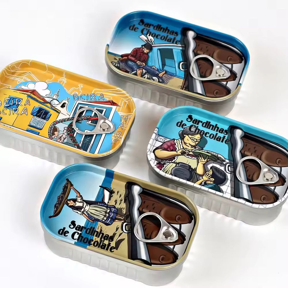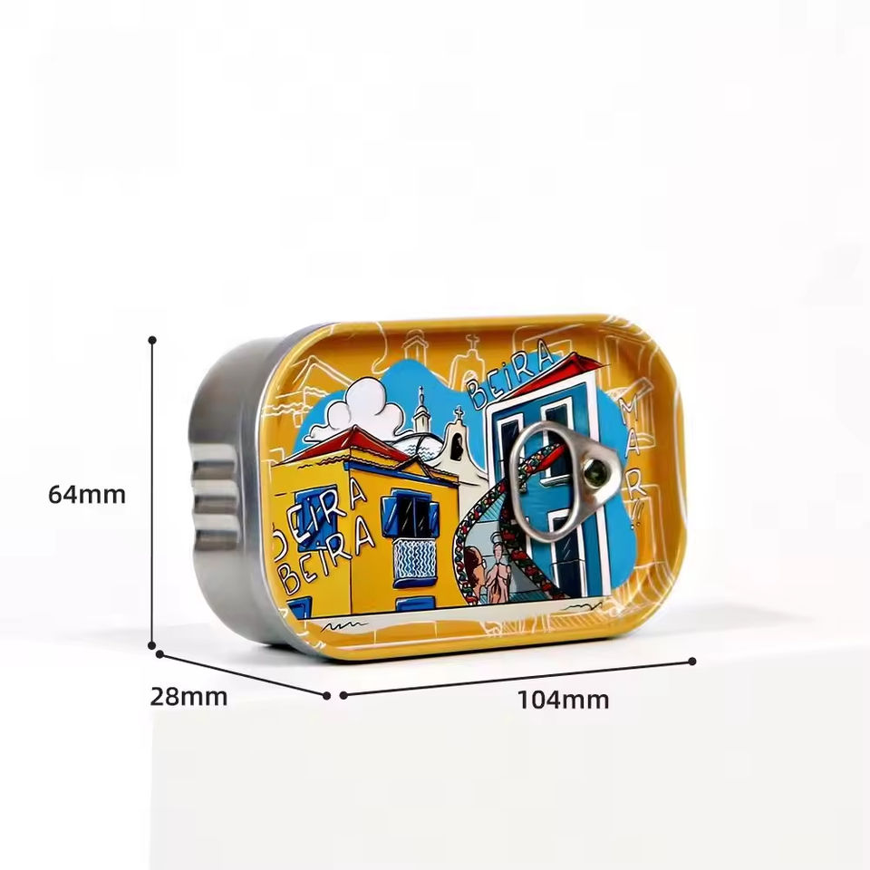 Petite boîte en fer blanc rectangulaire avec anneau de traction, couvercle facile à ouvrir, réutilisable, pour sardines