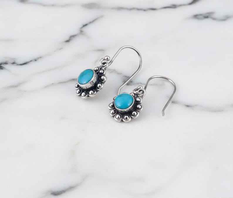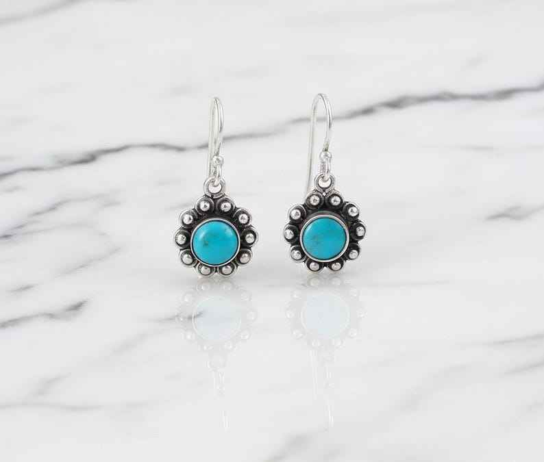 Petites boucles d'oreilles pendantes en forme de fleur turquoise, plaquées or, argent sterling, style bohème mignon, soleil éclatant, pierre de naissance de décembre, cadeau de bijoux