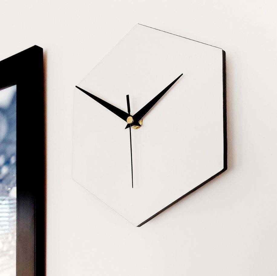 Petite horloge murale hexagonale contemporaine blanche de cuisine