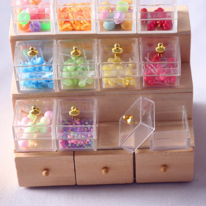 Petite vitrine de bonbons et légumes miniatures en bois pour magasin de maison de poupée