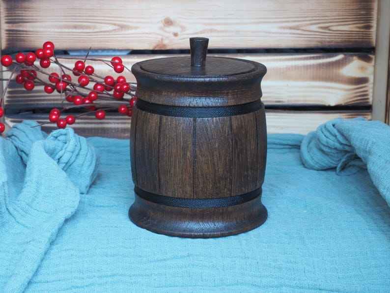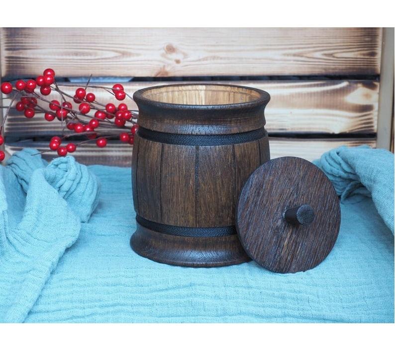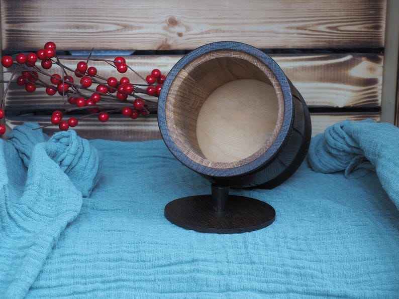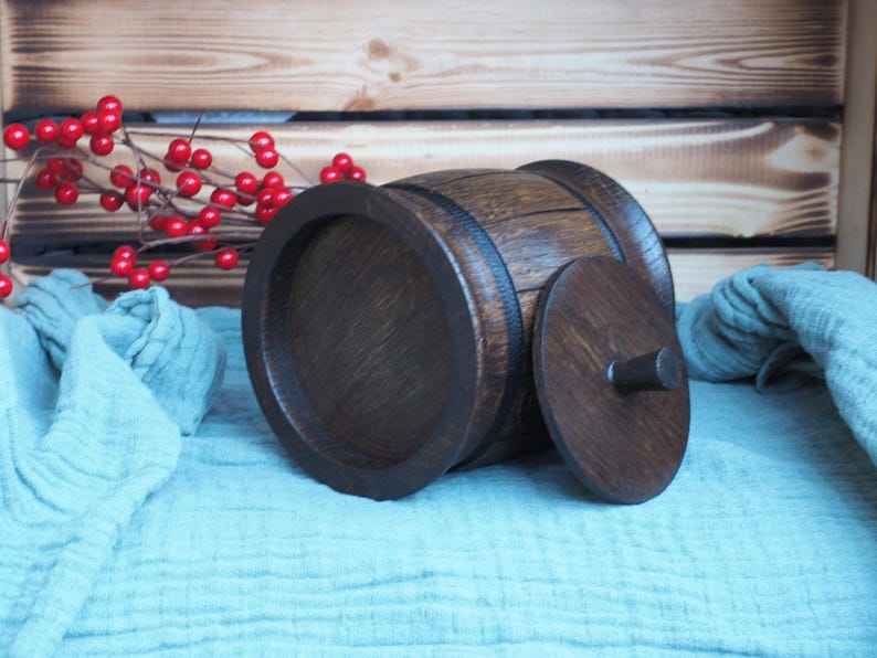 Petit tonneau en bois fait à la main à partir de bois naturel parfait pour le rangement ou l'affichage de la décoration intérieure rustique Design écologique et durable