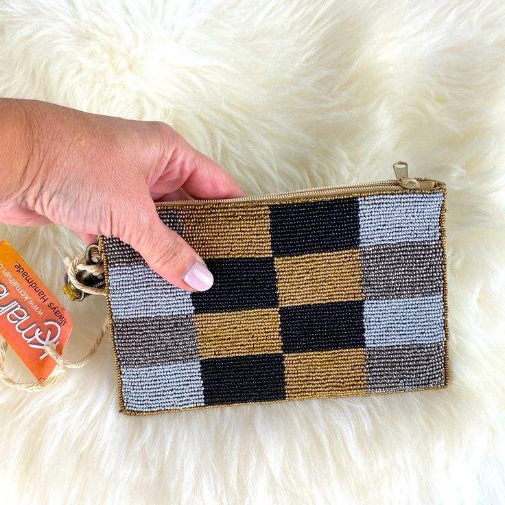 Petit sac à monnaie brodé zippé avec perles