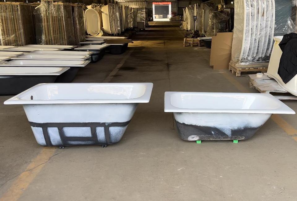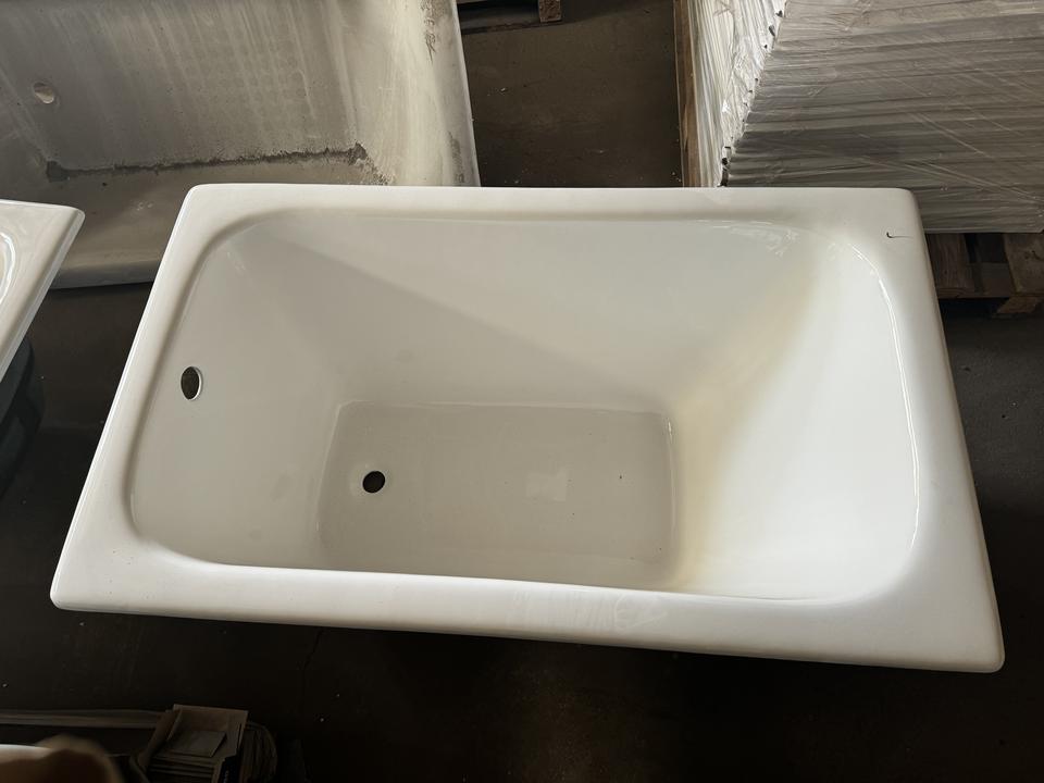 Petite baignoire en fonte de style traditionnel à immersion profonde avec drain, installation encastrée pour appartements