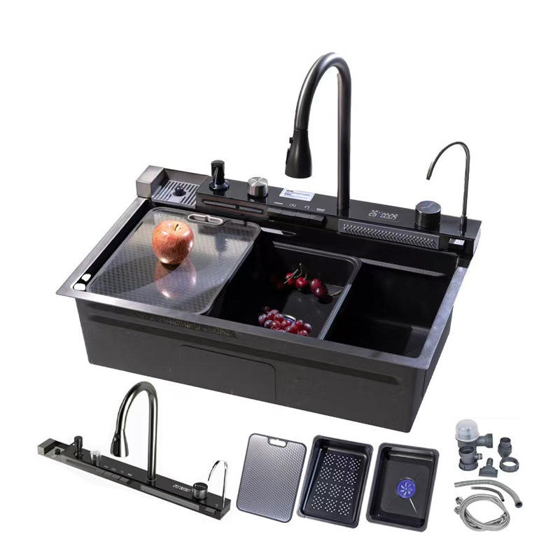 Évier de cuisine compact pour petits espaces, en acier inoxydable, avec robinet extractible et design multifonctionnel