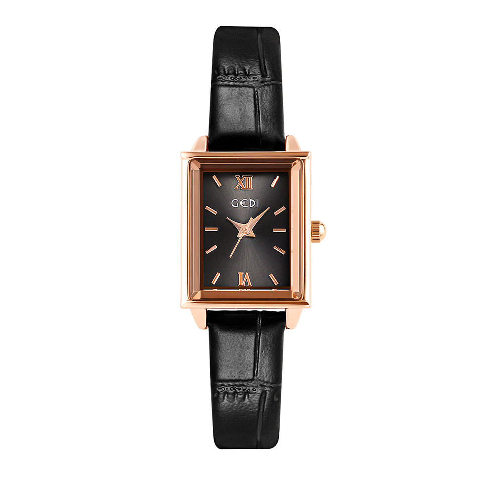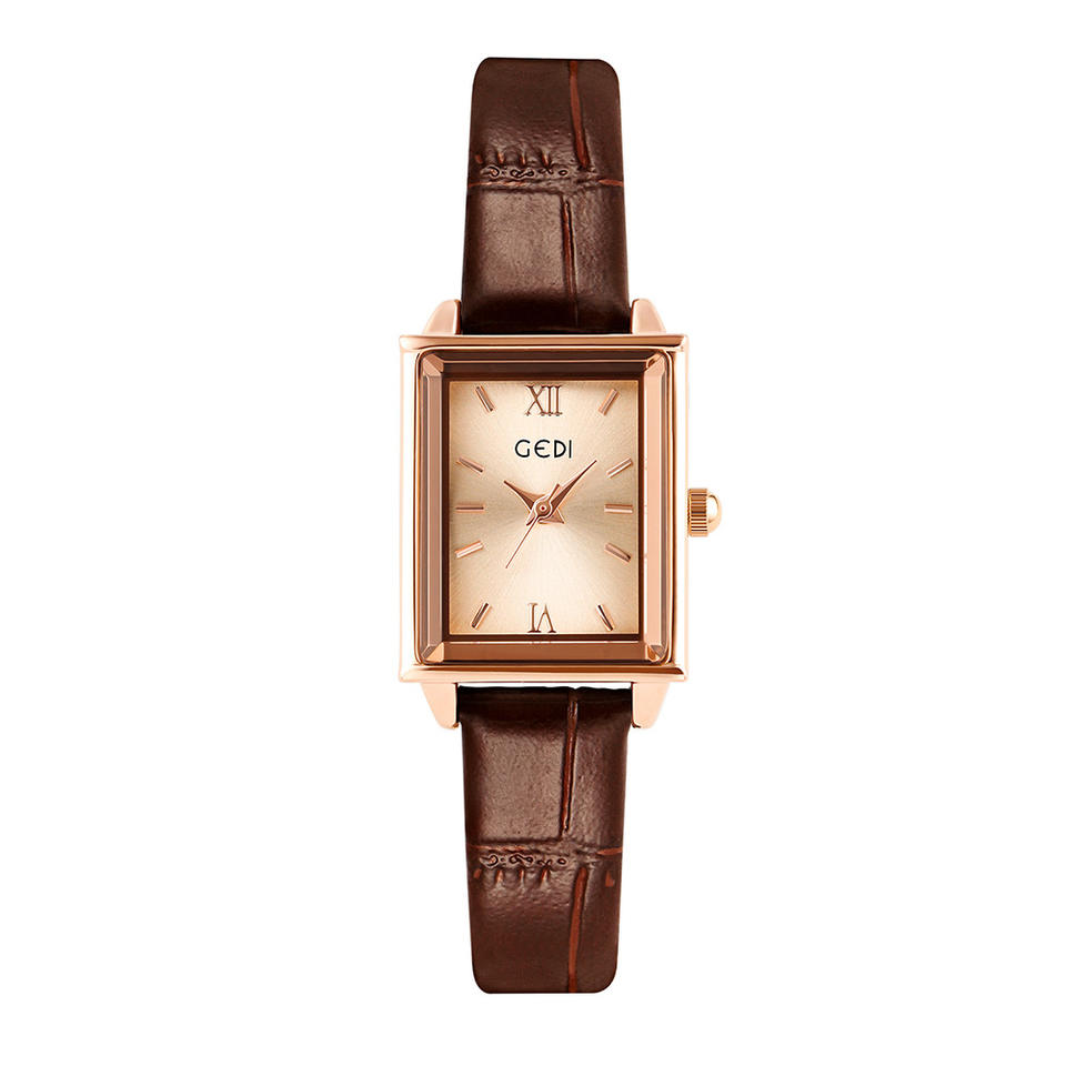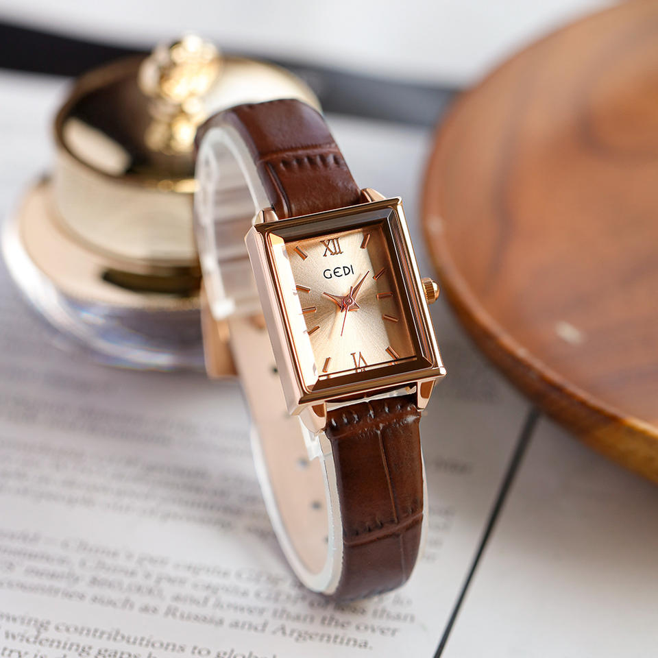 Small square women's watch, fashionable and trendy leather strap quartz wristwatch