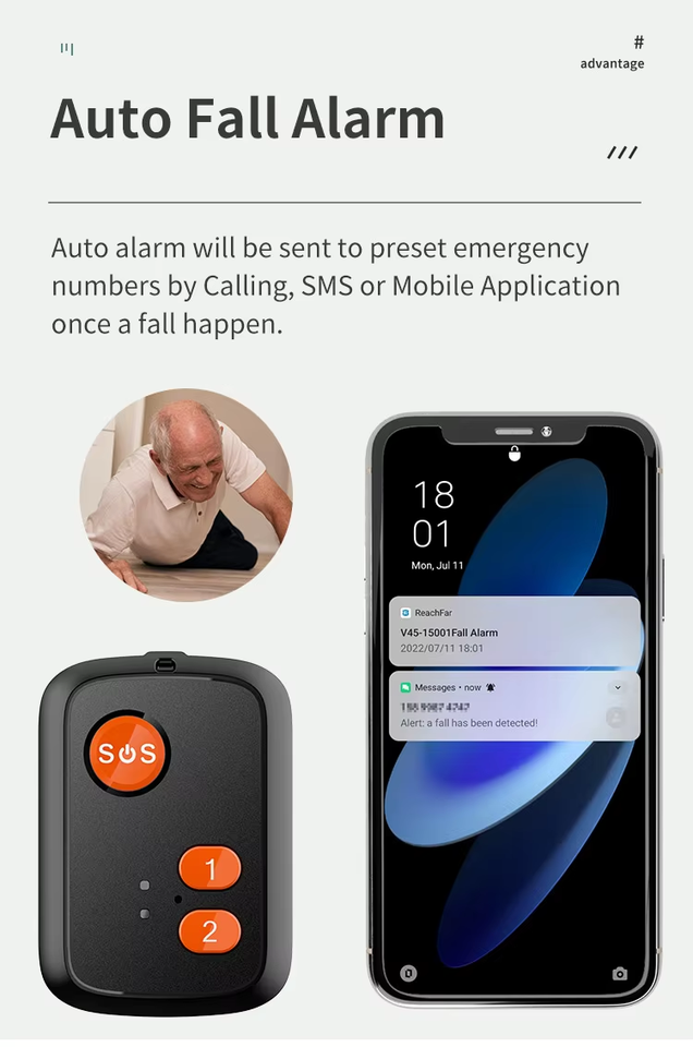 Télécommande, Télécommande app, Emplacement GPS, Mode D'économie d'énergie, Appel D'urgence SOS, Suivi en temps réel, Détection De chute, Geofence d'alarme, L'historique de localisation, Suivi de l'activitéFonction