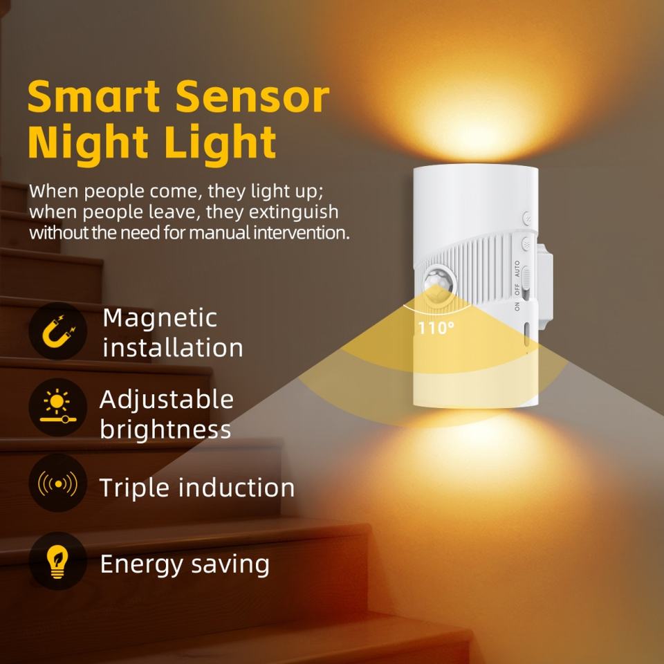Smart 360 ° Lampes murales LED magnétiques rotatives à piles avec détecteur de mouvement pour la décoration intérieure, chambre à coucher