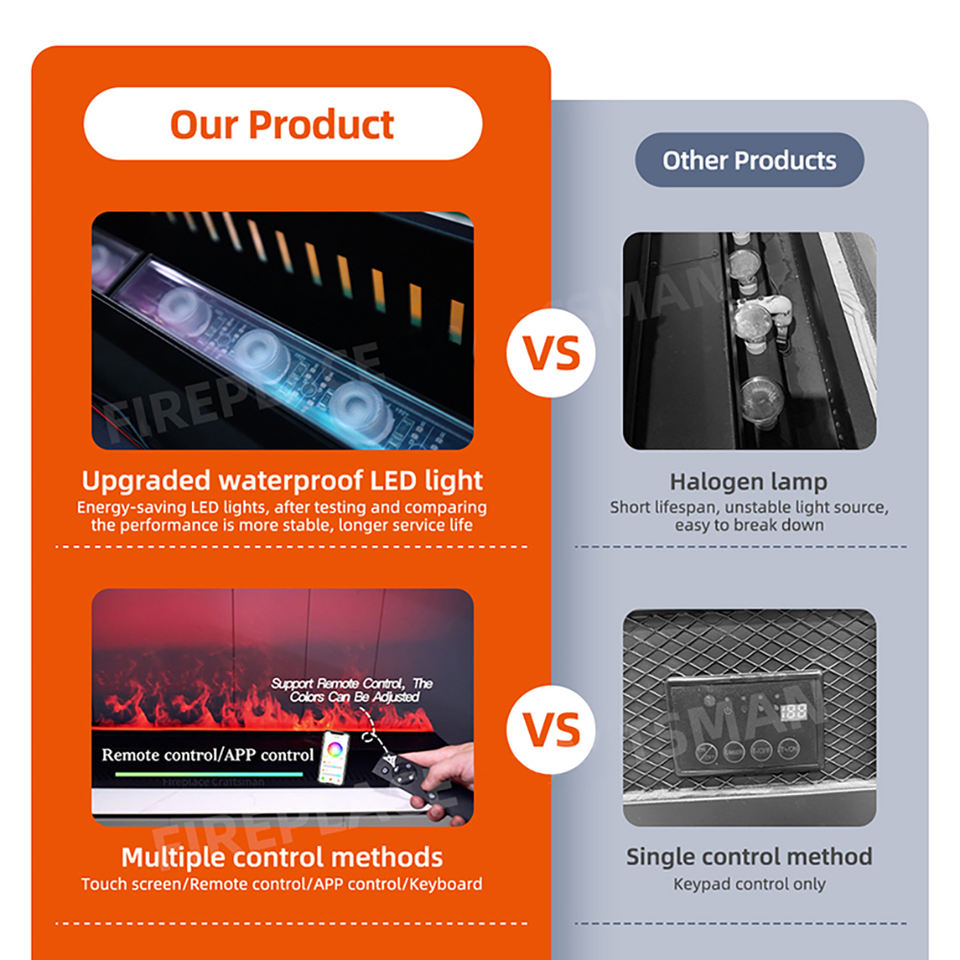 Fonction de télécommande: Permet une opération et un réglage confortables de la cheminée à distance, améliorant ainsi la commodité et le confort de l'utilisateur.