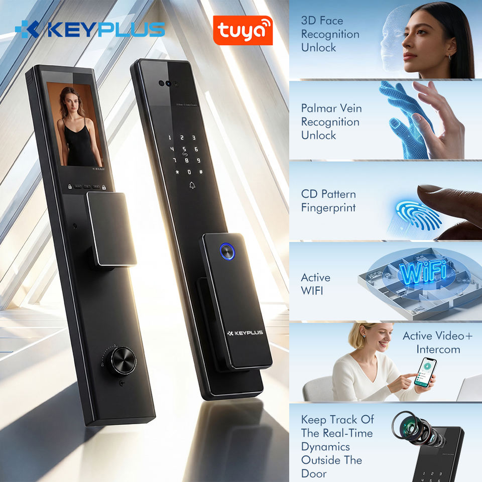 Serrure de porte intelligente avec reconnaissance faciale 3D, mot de passe numérique, empreinte digitale et reconnaissance de la veine palmaire