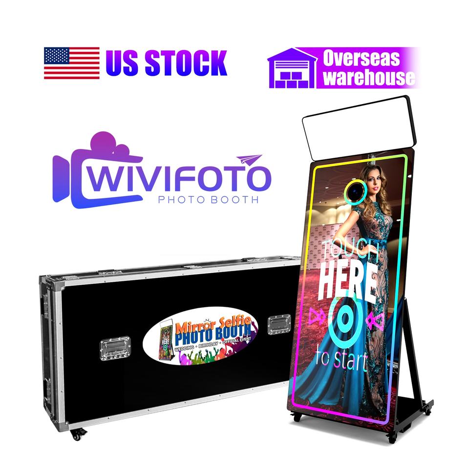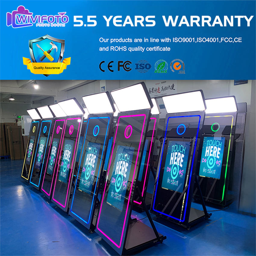 Machine pliante de cabine de photo de selfie d'écran de 65 pouces 43 dans la cabine de photo de miroir Instagram avec des médias sociaux