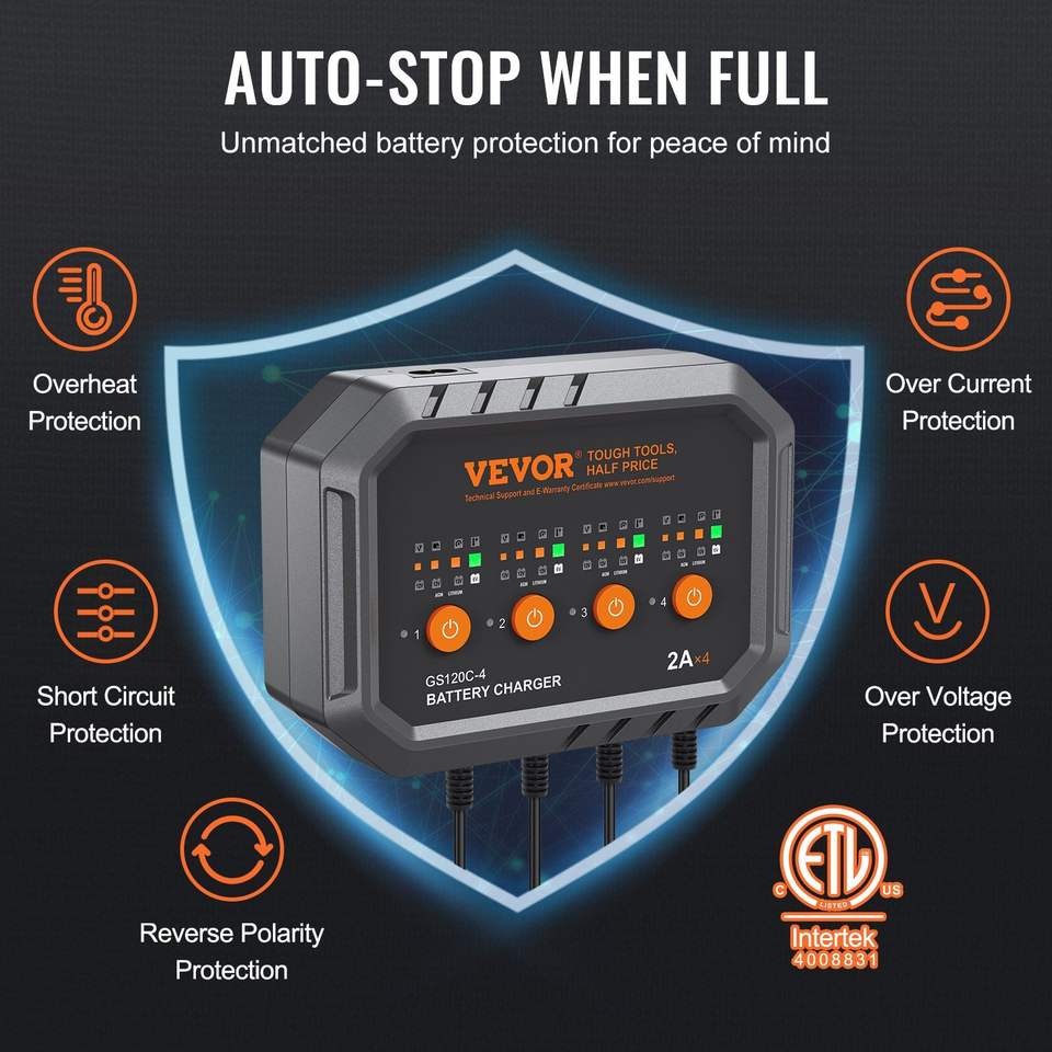 Chargeur de batterie intelligent 8 A entièrement automatique pour batteries LiFePO4 et batteries au plomb (AGM/Gel/SLA) – Entretien automobile B