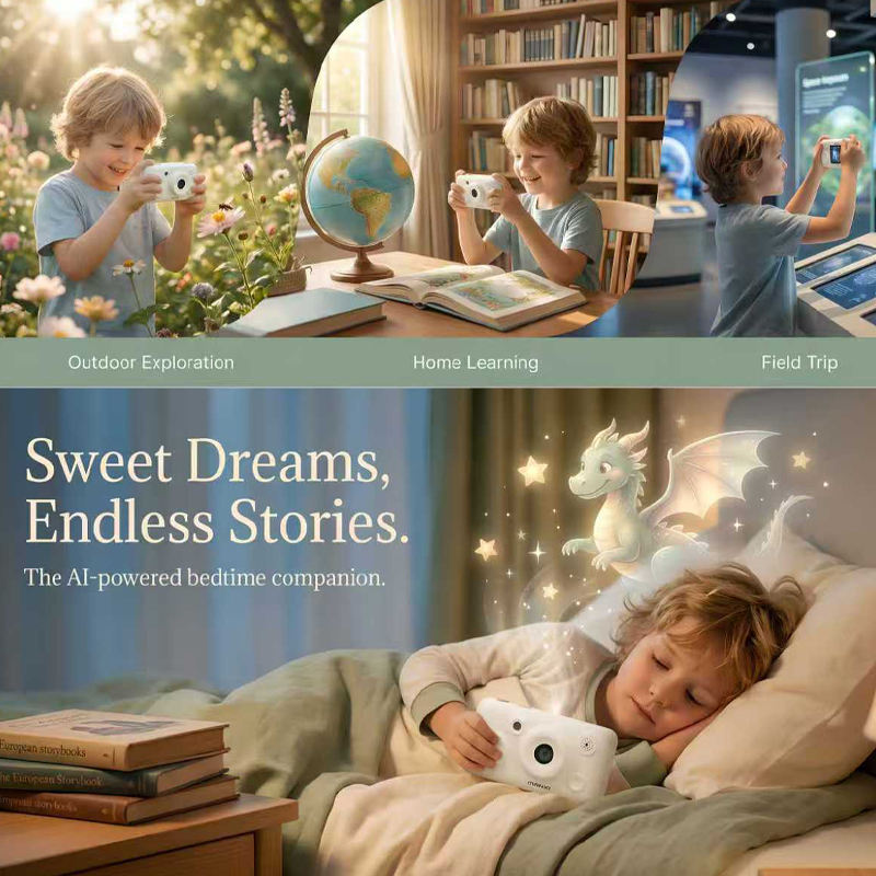 Caméra intelligente d'apprentissage IA, caméra créative pour enfants pour le jeu quotidien et les cadeaux