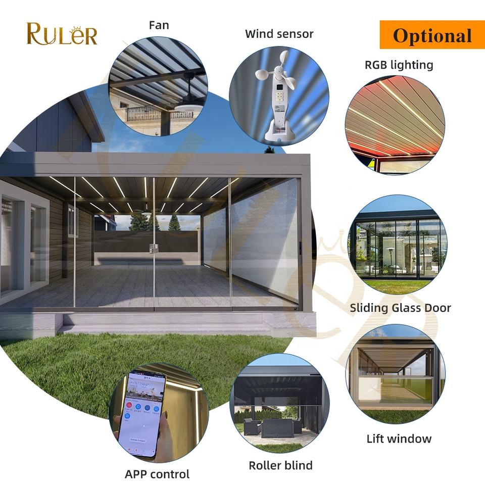Smart ALuminum Sunroom Fenêtre élévatrice en option Porte vitrée Pavillon motorisé Pergola bioclimatique