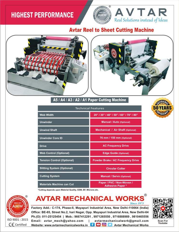 Machine de découpe de papier intelligente AVTAR A4, contrôlée par PLC, 2,2 kW, haute efficacité, 250 feuilles/min, usage intensif, fabriquée en Inde, fiable, la meilleure