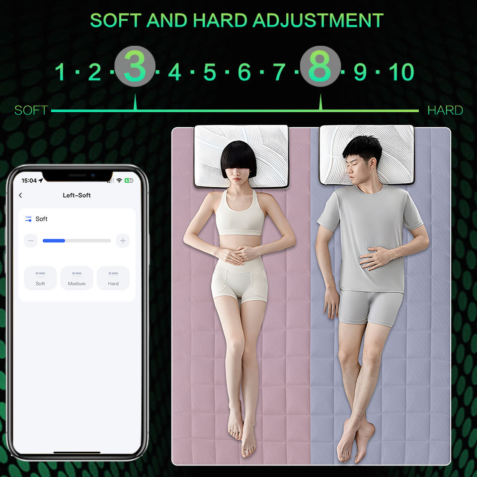 Matelas intelligent réglable avec moteur allemand OKIN, mode zéro gravité, mode balancement bébé en option, fonctions anti-ronflement/massage/chauffage, pour usage hospitalier et hôtelier