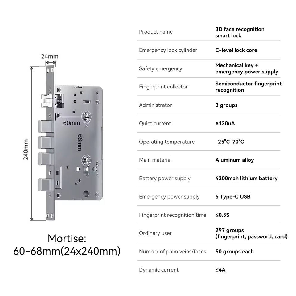 Unlock way:Phone+Face+Palm+Fingerprint+Password+Card+Key