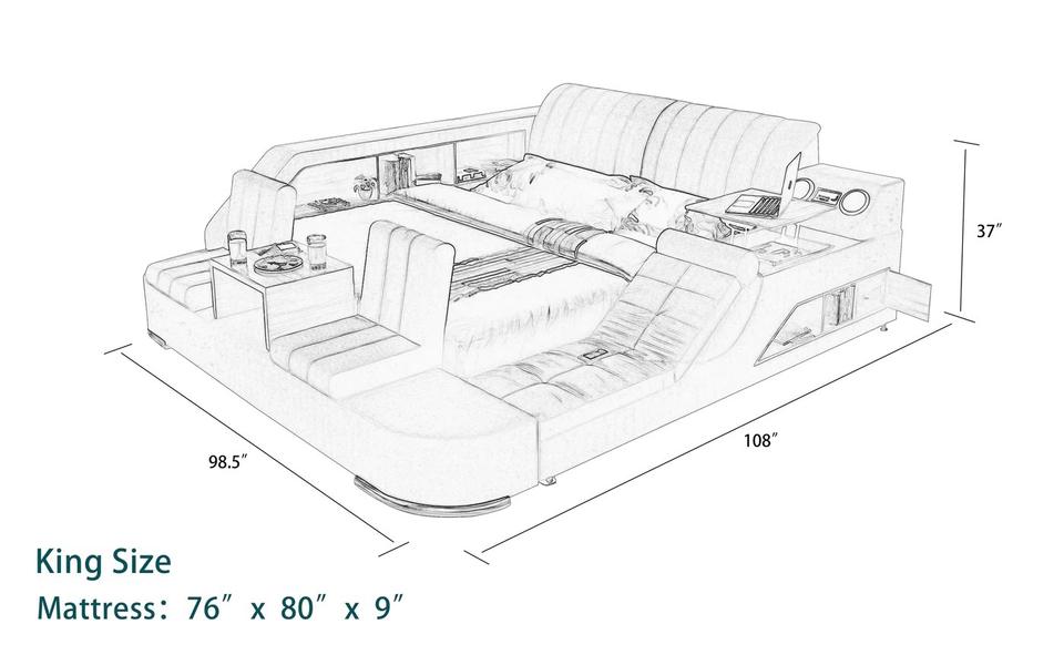 Lit intelligent avec cadre king size, lit queen size en vente, lit de chambre à coucher avec massage et rangement, lit intelligent multifonctionnel moderne en cuir de luxe