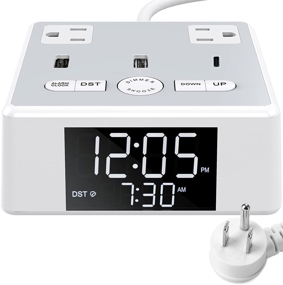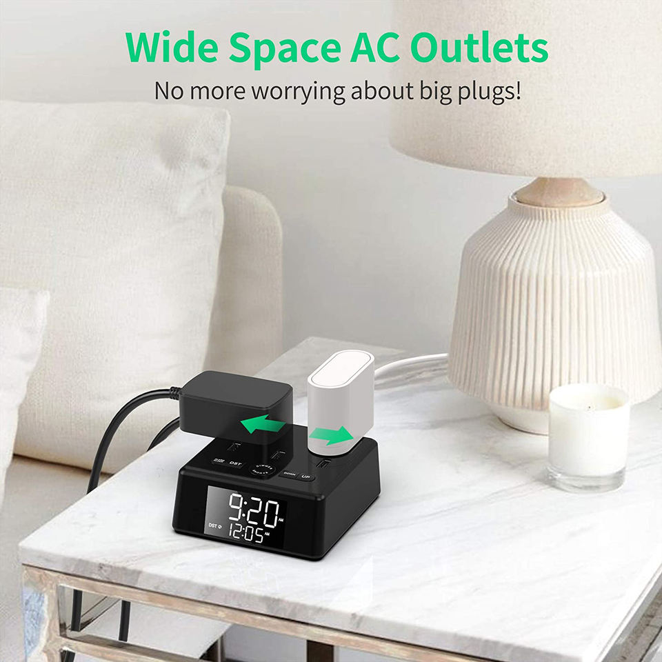 Smart Bedside digital alarm snooze Clock 12/24 Hour Led Display With AC outlet Usb Charging Port Home Office Decorative Clock