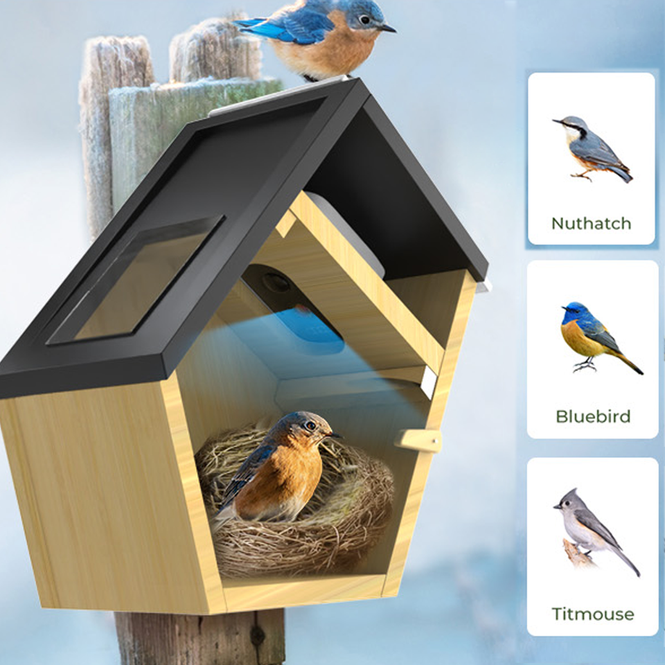 Maison d'oiseau intelligente mangeoire caméra 5MP HD sans fil extérieur maison d'oiseau en bois Wifi avec