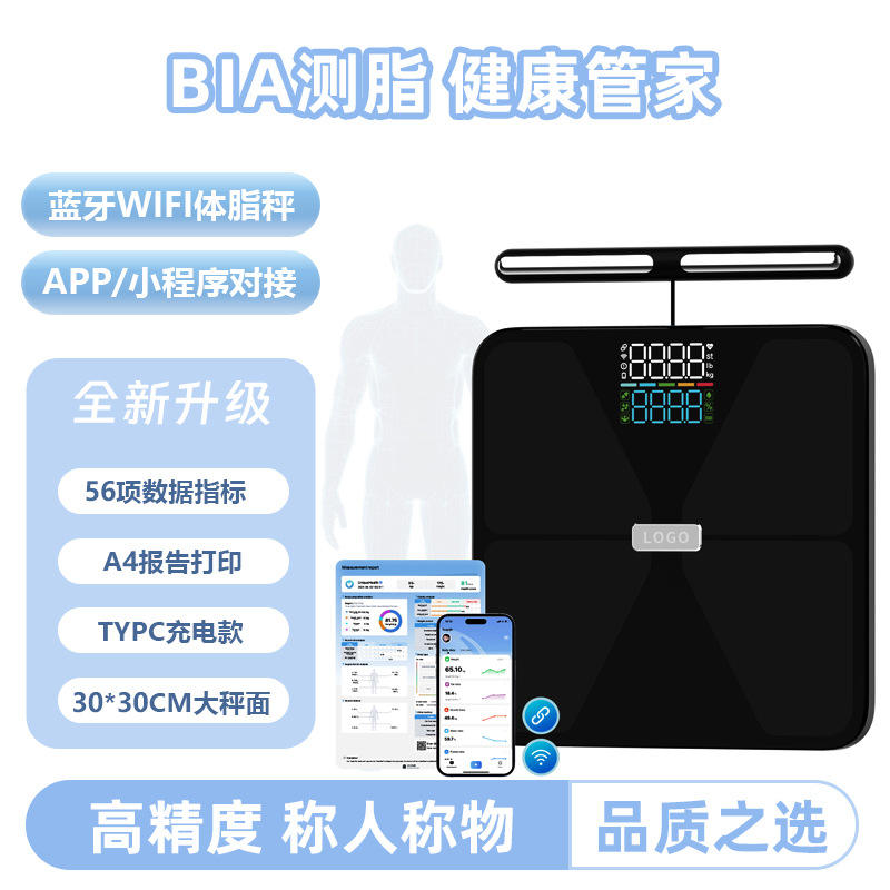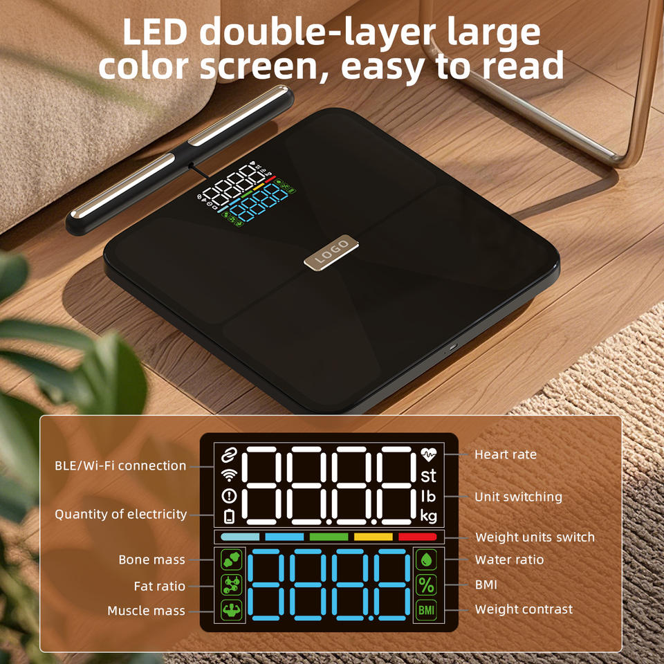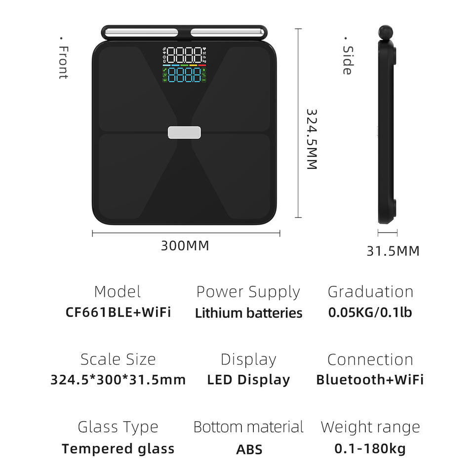 Pèse-personne intelligent avec analyse de la composition corporelle CF661BLEWIFI, écran LED 300 mm, Bluetooth, WiFi, rechargeable, pour la santé à domicile