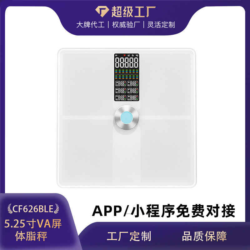 Balance intelligente pour la mesure de la graisse corporelle avec Bluetooth, verre trempé rectangulaire de 320 mm, blanc et noir, pour le suivi de la perte de poids à domicile
