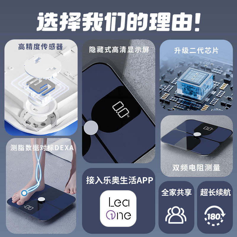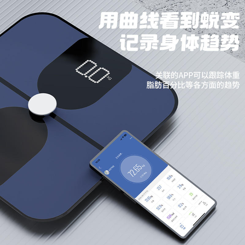 Pèse-personne intelligent rectangulaire à détection tactile, capteur haute précision, alimenté par piles, noir, électrodes blanches revêtues d'ITO