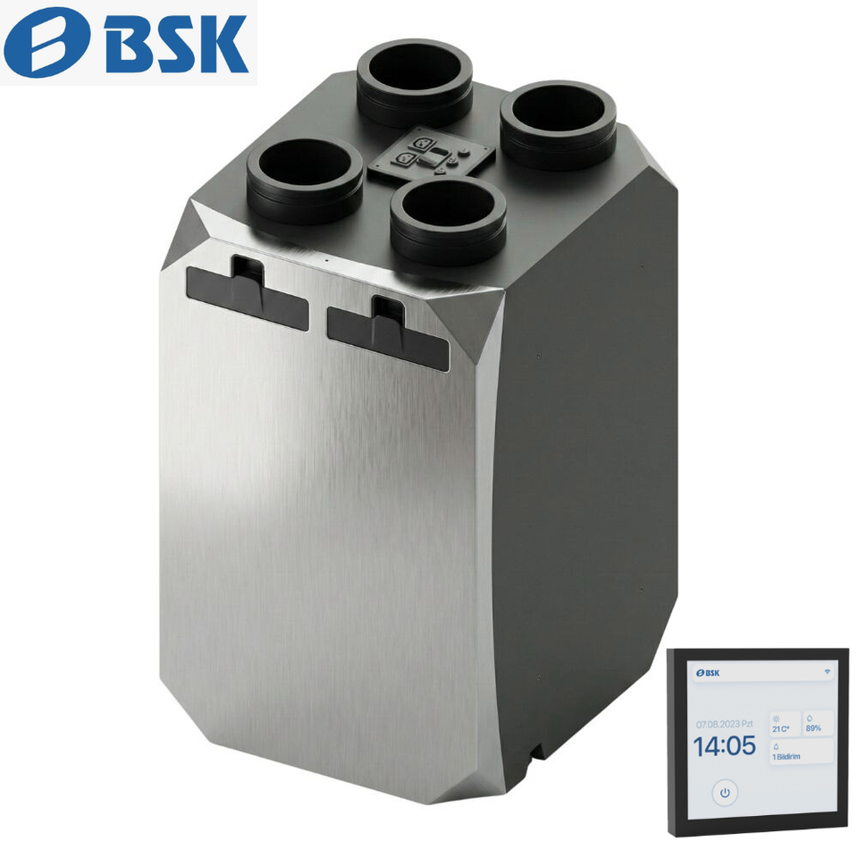 Ventilateur de récupération de chaleur à contre-courant intelligent HRV haute efficacité 375 m³/h avec contrôle WiFi via application, classe A+, pour économie d'énergie, idéal pour hôtels et hôpitaux