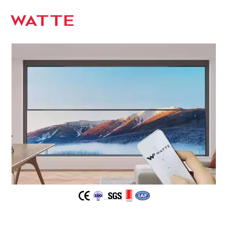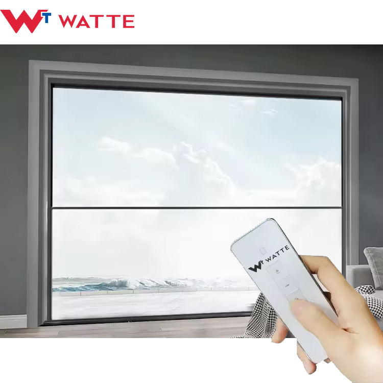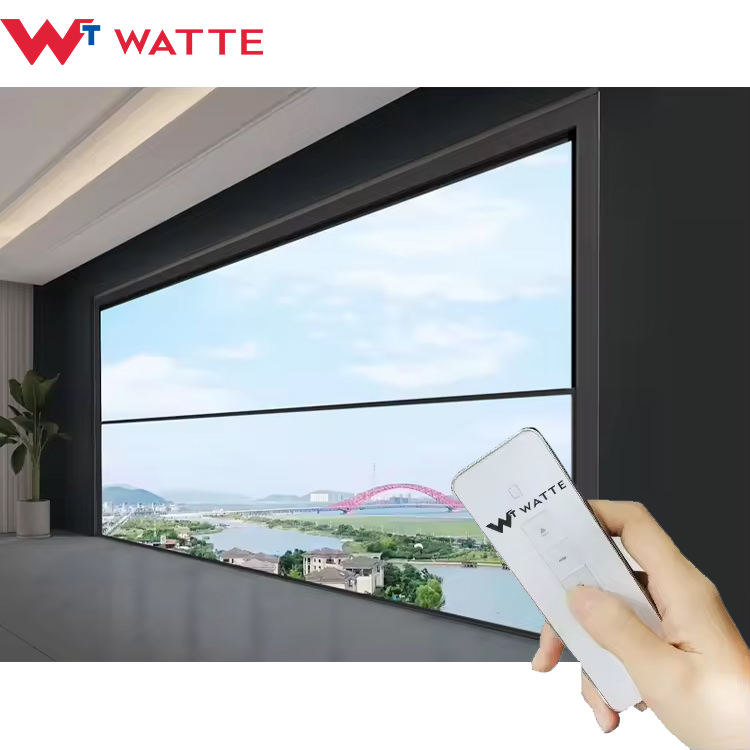 Fenêtre à guillotine en verre à cadre en aluminium à levage automatique par télécommande, grande taille, design intelligent, coulissant verticalement