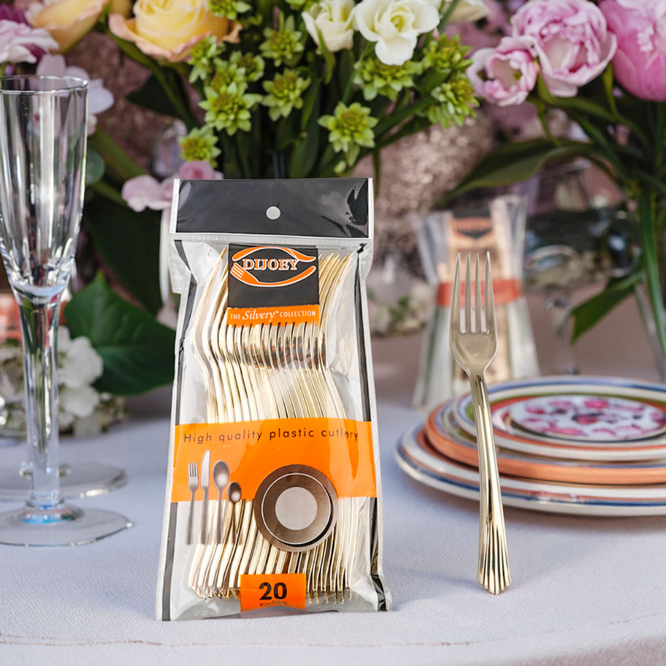 Nom du produit:Cuillères et fourchettes à salade jetables en plastique doré, design intelligent et économique