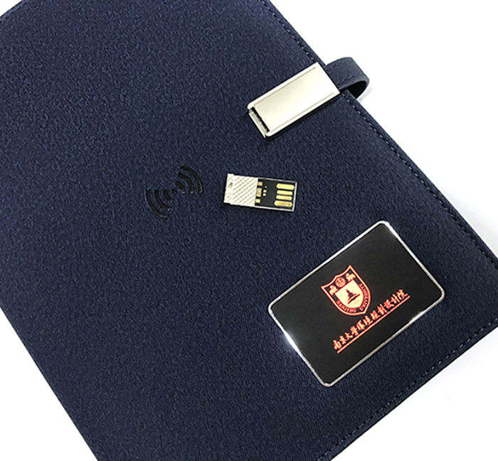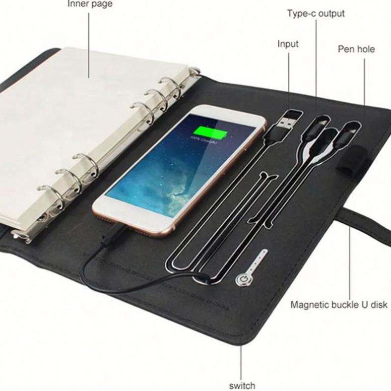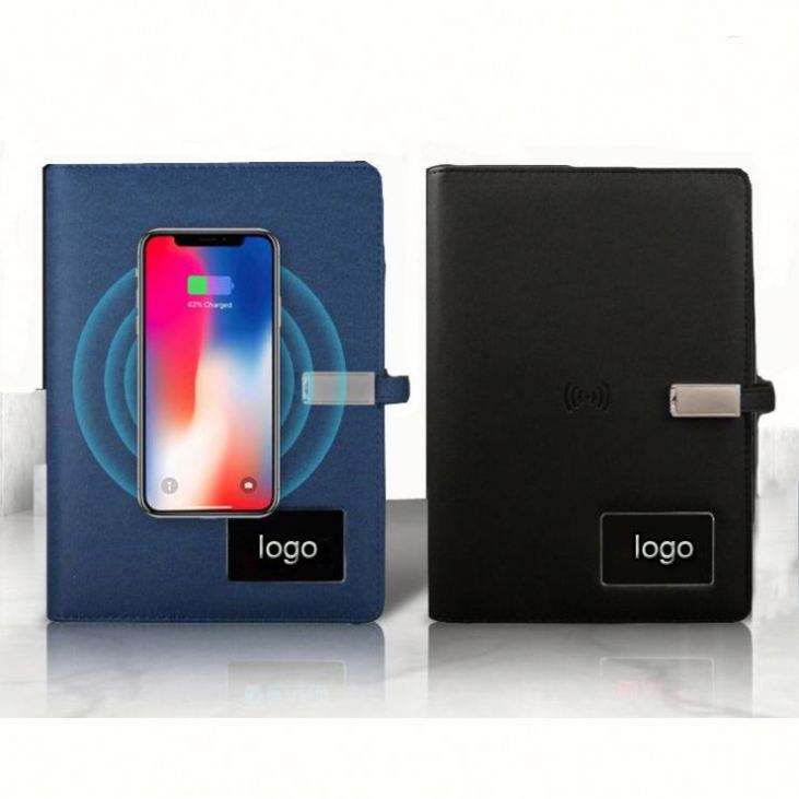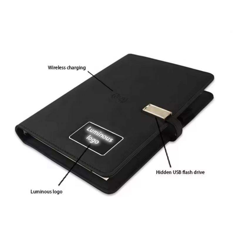 Agenda intelligent, carnet de notes, cadeau d'affaires, charge sans fil, lumière LED, logo, format A5, style couverture rigide en cuir