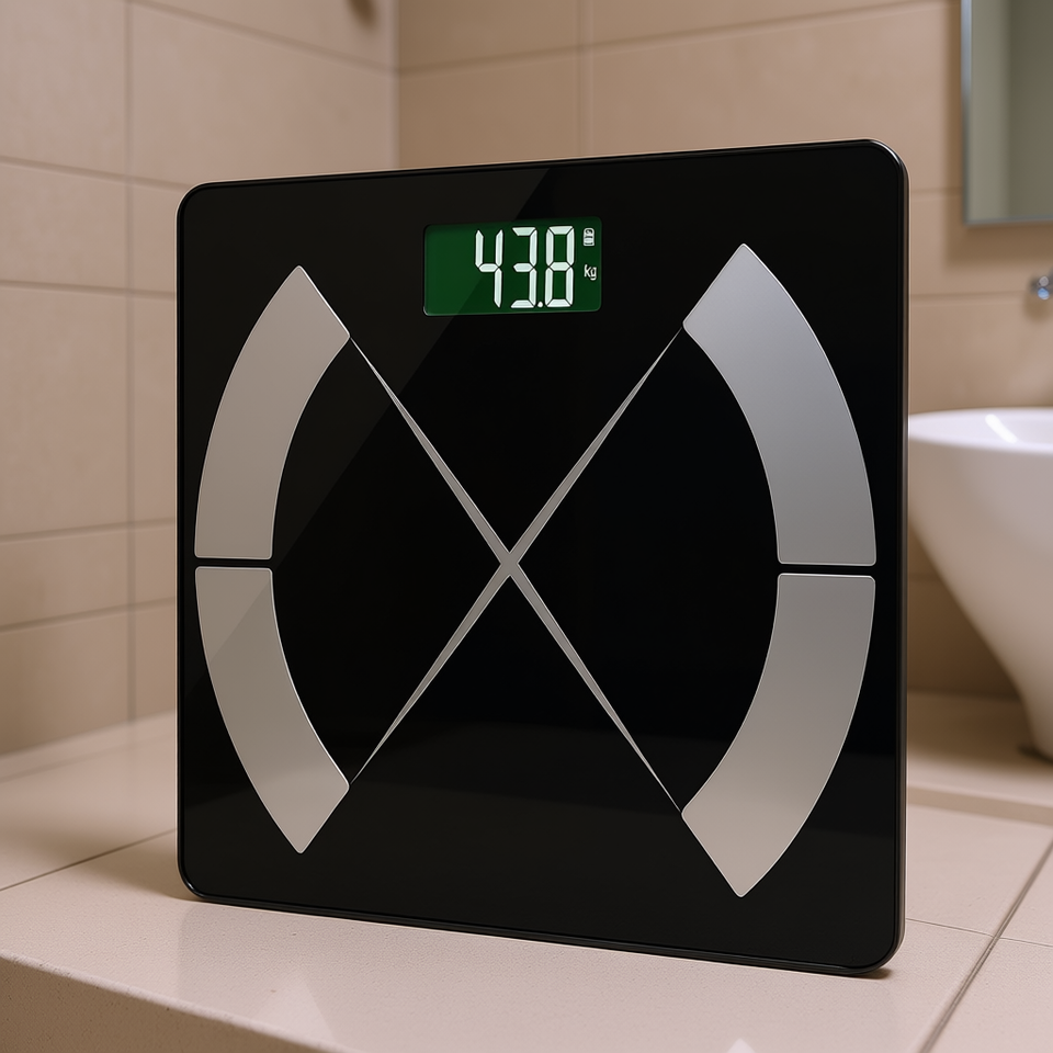 Balance connectée intelligente pour la composition corporelle, verre carré noir, capacité maximale 180 kg, moniteur d'IMC, connectivité Bluetooth via application