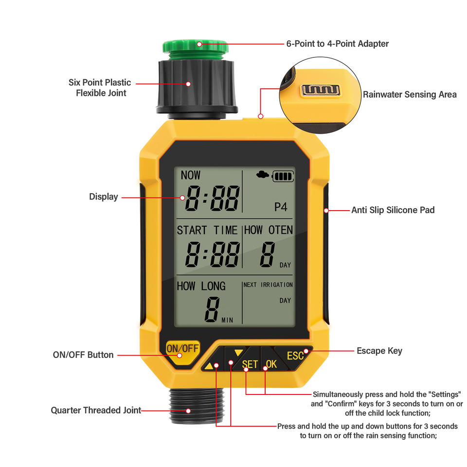 Rain Sensor Mode:Automatically stops watering on rainy days