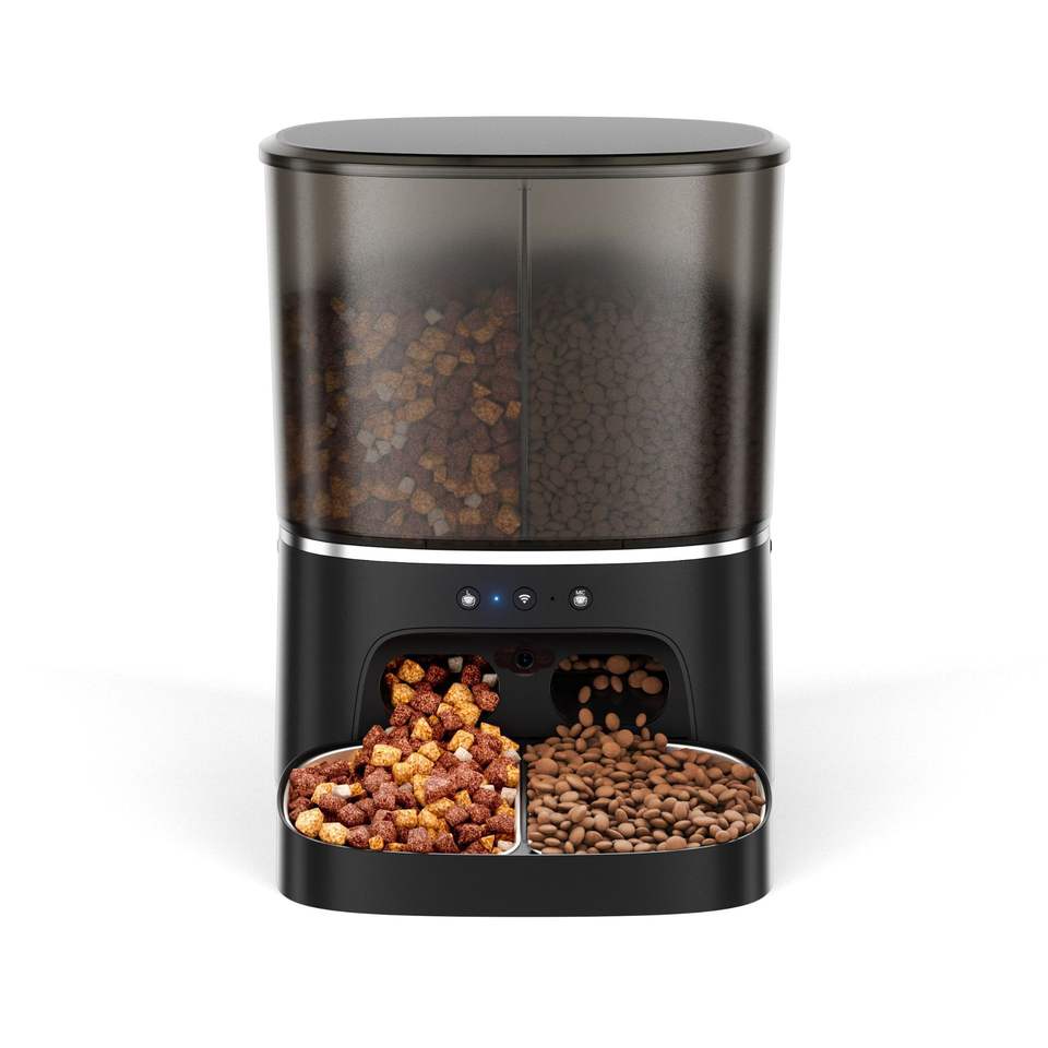 Distributeur automatique de nourriture pour animaux de compagnie à double bol intelligent 8L avec caméra pour chats et chiens, design arrondi, prise US, détachable