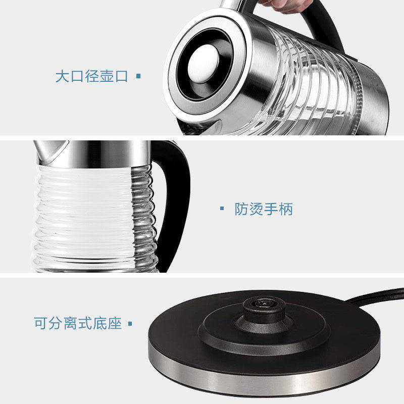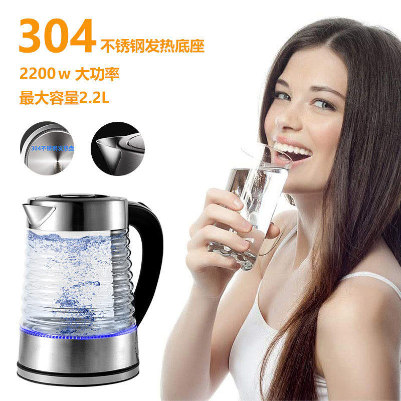 Bouilloire électrique intelligente 2,2 L grande capacité, commande tactile, en verre, pour thé et eau chaude, usage domestique